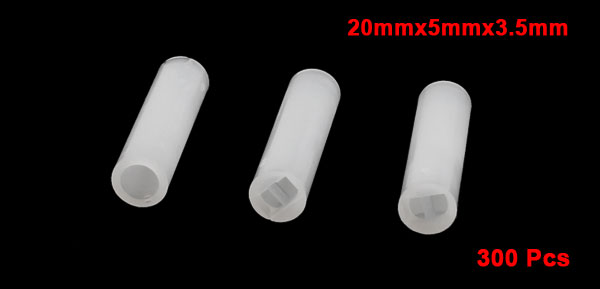 300 Pcs White Nylon 66 Cylinder Shape Spacer Supports 5mmx20mm for PCB Board