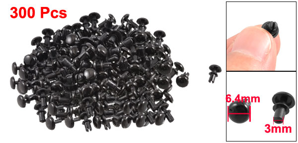 Product Name Push Rivet Part No. R3045 Head Dia.(Approx.) 6.4mm/ 0.25" Head Thickness(Approx.) 1.6mm/ 0.06" Bottom Dia.(Approx.) 3.0mm/ 0.12" Push In Height(Approx.) 4.5mm/ 0.18" Total Height(Approx,) 9.3mm / 0.36" Fit for Panel Thickness 2.0-3.0mm Material Nylon Color Black Net Weight 31g Package Content 300±2% Pcs x Push Rivet - Reviews