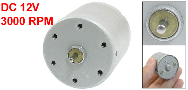 Product Name DC Motor Rated Voltage DC 12V Speed 3000 RPM Mounting Screw Hole Diameter 2mm/0.08" Screw Hole Distance 6mm/0.24" Shaft Size(Each) 2 x 12mm/ 0.08" x 0.5"(D*L) Body Size 35 x 31mm/ 1.4" x 1.2" (D*H) Main Color Silver Tone Material Metal Net Weight 91g Package 1 x DC Motor - Reviews
