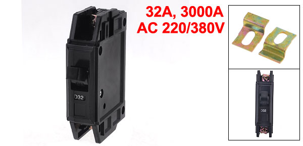 Product Name Moulded Case Circuit Breaker Model Number DZ12-63 Rated Circuit Breaking Capacity 3000A Rated Voltage AC 220/380V Rated Current 32A Frequency 50Hz Poles 1 Pole Overall Size (Approx) 95 x 77 x 23mm/ 3.7" x 3" x 0.91" (L*W*H ) Material Plastic, Electric Components Main Color Black Weight 120g Package Content 1 x Moulded Case Circuit Breaker