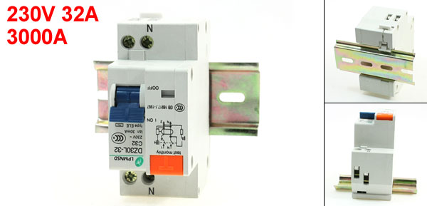 3000A Overload Protection Circuit Breaker 1P+N 230V 32A w Guide Rail