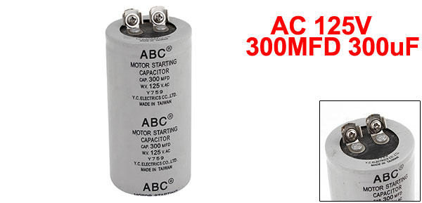Product Name Motor Capacitor Material Polypropylene Film Model ABC Capacitance 300MFD Rated Voltage AC 125V Body Size 45 x 88mm/ 1.8" x 3.5" (D * H) Color Gray Weight 130g Package Content 1 x Motor Capacitor - Reviews