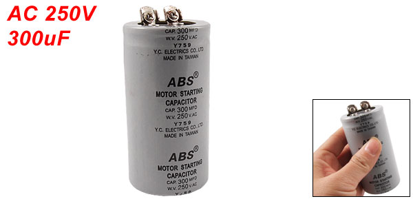 Product Name Motor Starting Capacitor Dieletric Material Metallized Paper Capacitance 300MFD(300uF) Withstand Voltage AC 250V Tolerance ±5% Body Size (Approx.) 45 x 88mm / 1.7" x 3.4" (D * H) Color Gray Weight 129g Package Content 1 x Motor Starting Capacitor - Reviews