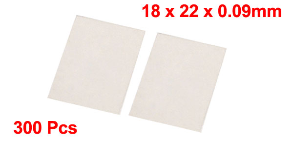 Product Name Mica Insulator Material Mica, Paper, Silicone Resin Size 18 x 22 x 0.09mm/ 0.71" x 0.87" x 0.0035(L*W*T) Color As Picture Shown Net Weight 26g Package Content 300pcs(±2%) x Mica Insulator  - Reviews