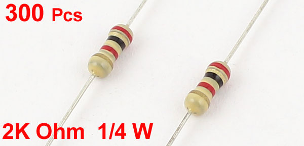 300PCS 2K Ohm 5% 1/4 Watt Axial Leads Color Ring Carbon Film Resistors