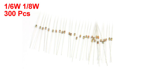 (30 Values, each is 10 pcs)Tolerance +/-5% Band Number 4 Body Size 3 x 1.4mm/0.12" x 0.055"(L*W) Total Length 6cm / 2.4" Lead Diameter 4mm/ 0.16" Weight 28g Package Content 300Pcs (+/-2%) x Carbon Film Resistors - Reviews