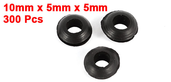 300Pcs 5mm x 10mm Black Rubber Cable Wiring Grommets Gasket Ring