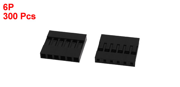 Product Name Jumper Wire Female Pin Connector Type 6P Pitch 2.54mm Size(Approx.) 15 x 14 x 2.5mm/0.6" x 0.55" x 0.1"(L*W*T) Color Black Metarial Plastic Net Weight 95g Package Content 300(+/-2%) x Jumper Wire Female Pin Connectors - Reviews