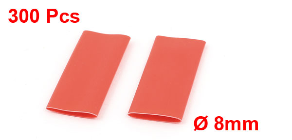 300pcs 8mm 2:1 Red Flexible Polyolefin Heat Shrink Tubing Wire Wrap