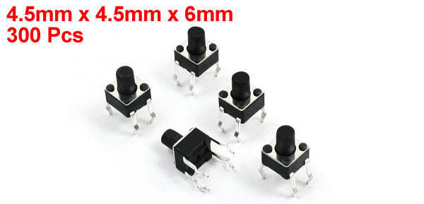 300pcs DC50V 1A 4.5x4.5x6mm Momentary 4 Pins Micro PCB Tact Tactile Switch