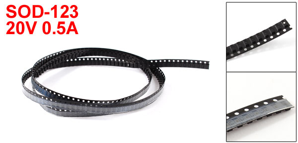 Product Name Schottky Diode Model MBR0520 Diode Case/Package SOD-123 Pin Count 2 Current 0.5A Reverse Voltage 20V Peak Non-Repetitive Surge Current 5.5A Maximum Forward Voltage @0.5A 0.385V Operation Junction Temperature -65C to +125C Body Dimension 4 x 1.5mm(L*W) Total Length 120cm / 3.9Ft Color Black Weight 3g Package Content 300 in 1 (±2%) x Schottky Diodes - Reviews