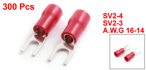 300PCS Red Insulated Furcate Fork Terminals Cable Lug AWG16-14 SV2-4 + SV2-3