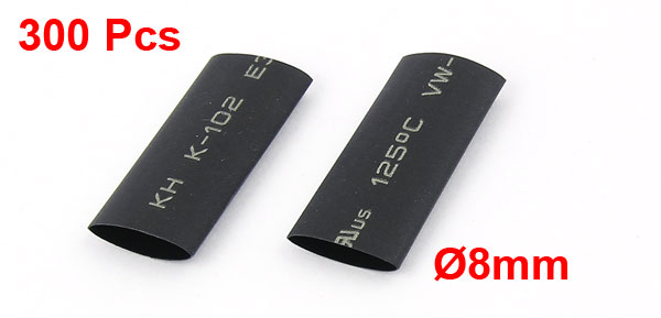 300pcs Wrap Wire Black 8mm Dia Heat Shrink Tube Cable Sleeving 2:1