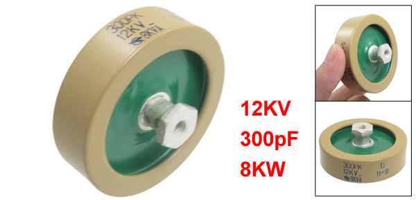 Product Name HV Ceramic Capacitor Withstand Voltage 12KV Capacitance 300pF Power 8KW Capacitance Tolerance 10% Thread Size 10 x 5.4mm / 0.39" x 0.21"(Depth*D) Dimension 60 x 17mm / 2.36" x 0.67"(Dia* W) Total Height 34mm/ 1.34" Material Ceramic, Brass Color Khaki, green Weight 147g Package Content 1x HV Capacitor - Reviews