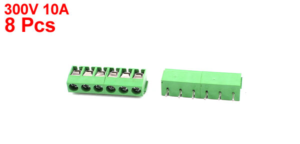 300V 10A 6P 6 Position 5mm Pitch Screw Terminal Barrier Blocks Green 8pcs