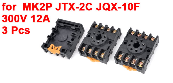 300V 12A 35mm DIN Rail 8 Pin PF-083A Socket Base for MK2P JTX-2C JQX-10F 3Pcs
