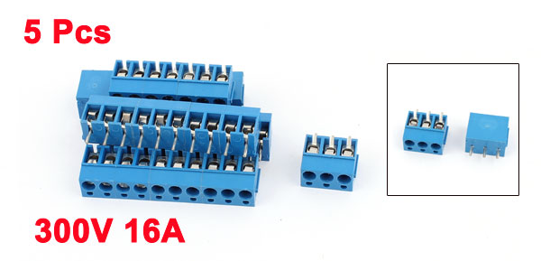 300V 16A TY300 10P 10 Position 5mm Pitch Screw Terminal Barrier Blocks Blue 5pcs