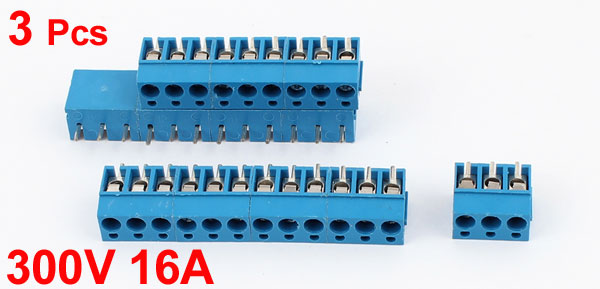 300V 16A TY300 12P 12 Position 5mm Pitch Screw Terminal Barrier Blocks Blue 3pcs