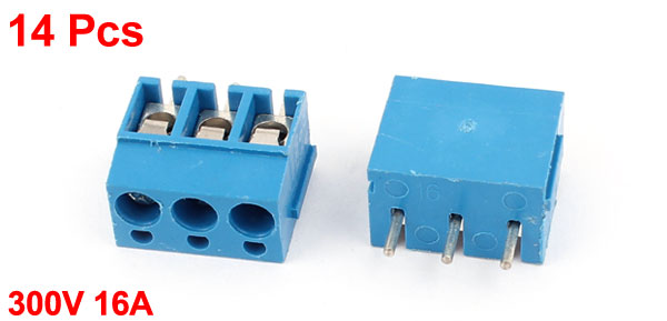 300V 16A TY300 3P 3 Position 5mm Pitch Screw Terminal Barrier Blocks Blue 14pcs