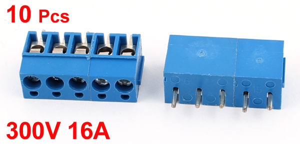 300V 16A TY300 5P 5 Position 5mm Pitch Screw Terminal Barrier Blocks Blue 10pcs