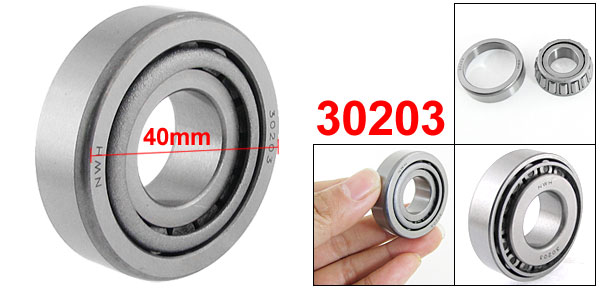 Product Name Tapered Roller Bearing Model 30203 Materal Metal Outer Diameter 40mm/ 1.57" Inner Diameter 17mm/ 1.67" Width 12mm/ 0.47" Main Color Silver Tone Weight 78g Package Content 1 x Tapered Roller Bearing - Reviews