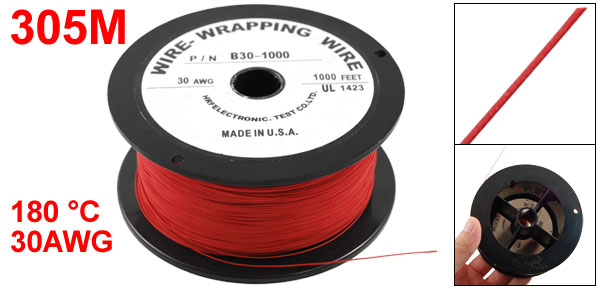 Product Name Wrapping Wire Model P/N B30-1000 UL1423 Type 30AWG Wire Size 0.5 x 0.25mm / 0.019" x 0.009"(OD*Core Dia.) Cable Length(Approx.) 305M / 1000Ft Temperature Rating 180 °C Reel Size 10 x 4.5cm/ 3.9" x 1.8"(D*H) Material Plastic, PVC, Tin Plated Copper External Color Black, Red Weight 216g Package 1 x Wrapping Wire - Reviews