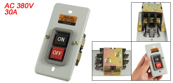 Product Name Power Push Button Switch Model TBSS-330 Type ON-OFF, Three Phases Material Metal, Electric Parts Voltage AC 380V Current 30A Power 3.7Kw Total Size (Approx.) 11.2 x 5.8 x 5.3cm/ 4.4" x 2.3" x 2.1" (L*W*H) Mount Hole 6mm/ 0.24" Color As Picture Shown Weight 134g Package Content 1 x Power Push Button Switch - Reviews