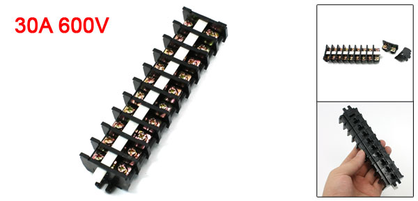 30A 600V Double Rows 10 Position Connector Strips Terminal Blocks
