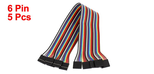30cm 2.54mm F/F 6 Pin Solderless Colored Flexible Breadboard Jumper Wire 5 Pcs