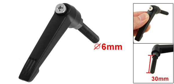 Product Name Adjustable Handle Material Metal Color Black Thread Diameter 6mm/ 0.24" Thread Length 30mm/ 1.18" Lever Length 55mm/ 2.16" Weight 28g Package Content 1 x Machinery Adjustable Handle - Reviews