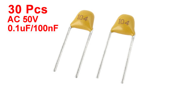 30pcs 104 0.1uF 100nF 20% 50V Multilayer Monolithic Ceramic Capacitor 5.08mm