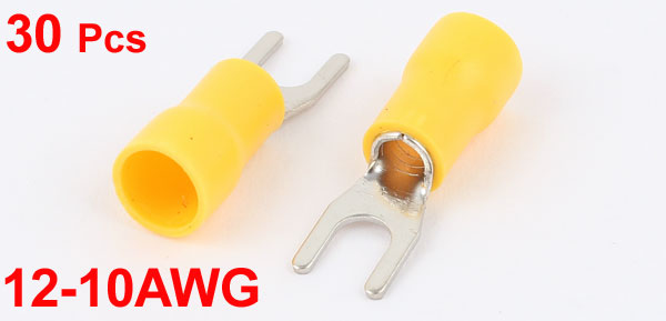30PCS 12-10AWG #8 Stud Yellow Insulated Fork Spade Terminal Electrical Connector
