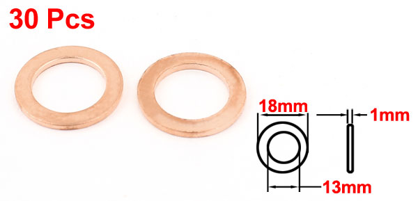 30Pcs 13x18x1mm Copper Flat Washer Gasket Spacer Seal Ring Tightening Fasteners