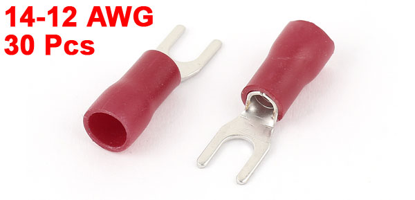 30PCS 14-12 AWG #8 Stud Red Insulated Fork Spade Terminals Electrical Connector