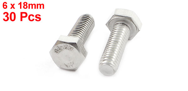 30Pcs 18mm Length 6mm Thread Hex Head A2-70 Stainless Steel Screw Bolt