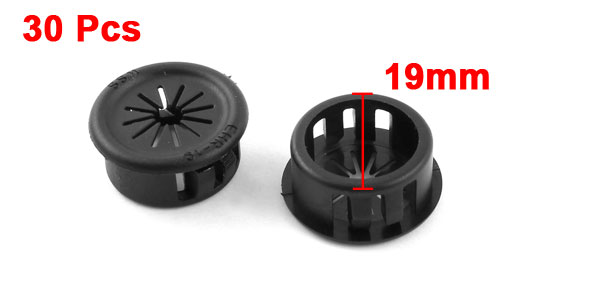 30Pcs 19mm Universal Black Plastic Cable Snap in Locking Bushing Grommet