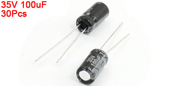 30Pcs 35V 100uF Radial Lead Electrolytic Capacitor 6mm x 12mm