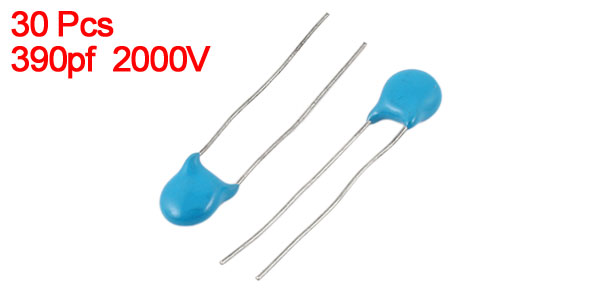Product Name Ceramic Disc Capacitors Capacitance 390PF Rated Voltage 2KV(2000V) Body Size 8 x 7 x 2.5mm/ 0.31" x 0.28" x 0.1"(L*W*T) Lead Space 4.5mm Lead Length 25mm Main Color Blue, Silver Tone Weight 16g Package Content 30Pcs x Ceramic Disc Capacitors - Reviews