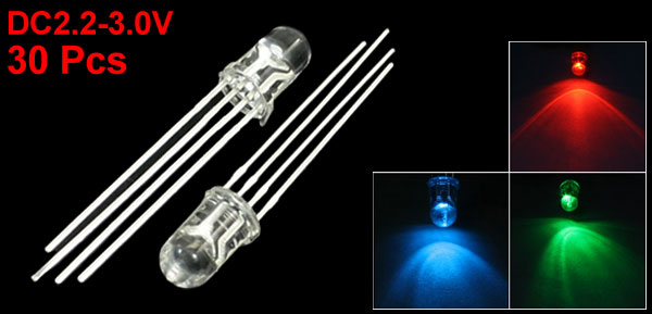 30Pcs 4 Pin Common Anode Red Green Blue LED Light Emitting Diodes DC2.2-3.0V