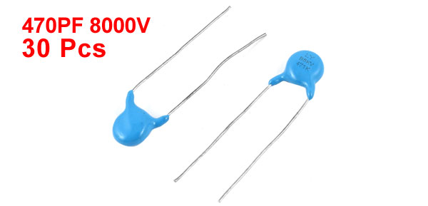 Product Name Ceramic Disc Capacitors Capacitance 470PF Rated Voltage 8000V Body Size 12 x 10 x 4mm/ 0.47" x 0.39" x 0.16"(L*W*T) Lead Space 8mm Lead Length 30mm Main Color Blue, Silver Tone Weight 30g Package Content 30Pcs x Ceramic Disc Capacitors - Reviews