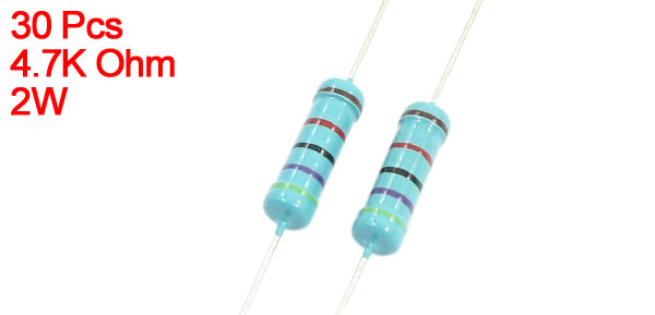 30Pcs 4.7K Ohm 2W Axial Leading Type 5 Color Ring Metal Film Resistor