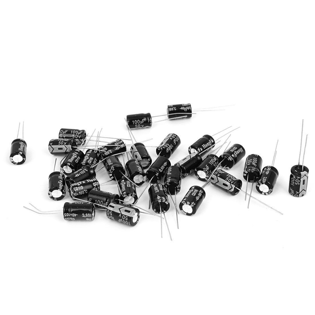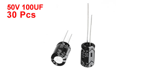 Product Name Electrolytic Capacitor Type Radial Voltage 50V Capacitance 100UF Body Size 8 x 12mm/ 0.7" x 1.3"(D*L) Lead Space 3mm/ 0.12" Lead Length 25mm/ 1", 20mm/0.79" Total Length 38mm/ 1.5" External Material Aluminum Total Net Weight 33g Main Color Black, Gray, Silver Tone Package Content 30 x Electrolytic Capacitors - Reviews