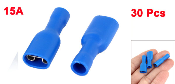 30pcs 6.35 x 0.8mm Insulated Female Crimp Terminal Connectors Blue FDFD2-250