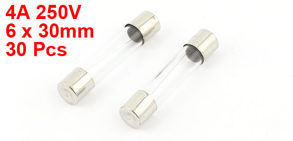 Product Name Glass Tube Fuses Features Fast Blow(F) Low Breaking Capacity(L) Rated Current 250V Rated Current 4A Body Size 6 x 30mm/ 0.24" x 1.2"(D*L) Material Glass, Metal Color Silver Tone, Clear Weight 32g Package 30 x Glass Tube Fuses - Reviews
