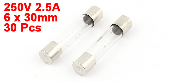 30pcs 6x30mm 2.5A 250V Quick Blow Fast Acting Cartridge Glass Tube Fuse