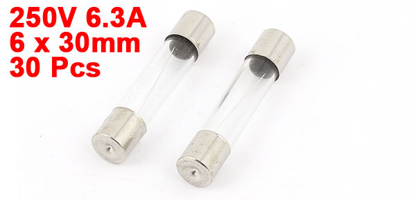 30pcs 6x30mm 6.3A 250V Quick Blow Fast Acting Cylindrical Glass Tube Fuse
