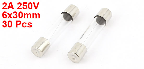 30pcs 6x30mm Quick Blow Fast Acting Cylindrical Glass Tube Fuse 2A 250V