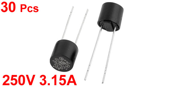 Product Name Micro Fuse Rating 250V 3.15A Each Body Size 8 x 8mm/ 0.31" x 0.31" (D*T) Each Pin 2.3cm / 0.91" Material Electronic Parts, Metal Color Silver Tone, Black Weight 21g Package 30 Pcs x Micro Fuses - Reviews