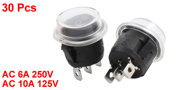 30Pcs AC 10A 125V SPDT ON/OFF-ON 3 Position Rocker Switch w Waterproof Cover