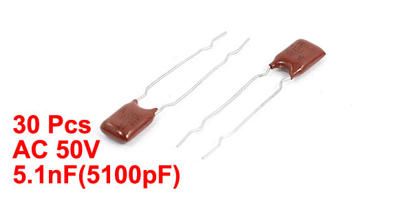 30pcs AC 50V 5.1nF Through Hole Metallized Polypropylene Film CBB Capacitor